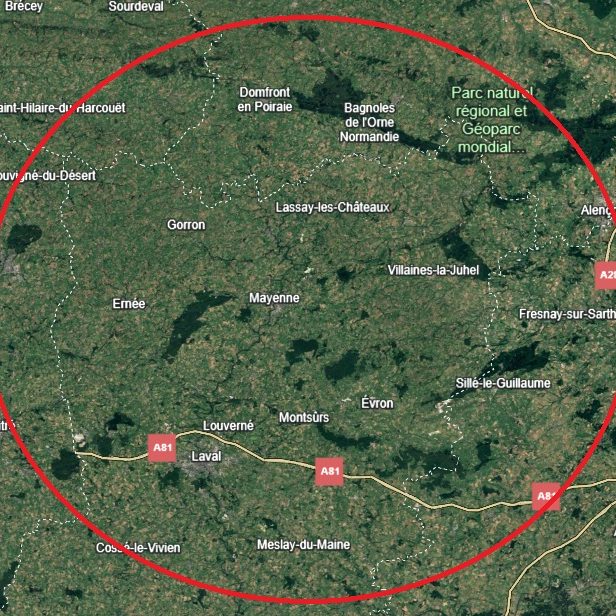 Nous nous déplaçons dans un rayon de 50 à 60 km autour de Mayenne.